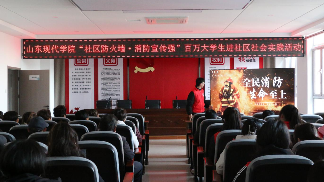 青春力量进社区,安全意识入人心。为全面提升我校学生消防安全意识与应急处置能力,切实筑牢社区消防安全“防火墙”,11月25日,由共青团山东现代学院委员会主办,志愿者服务中心劲竹志愿服务社承办的 “社区防火墙·消防宣传强”百万大学生进社区社会实践活动在济南市章丘区绣源西城社区顺利开展。
