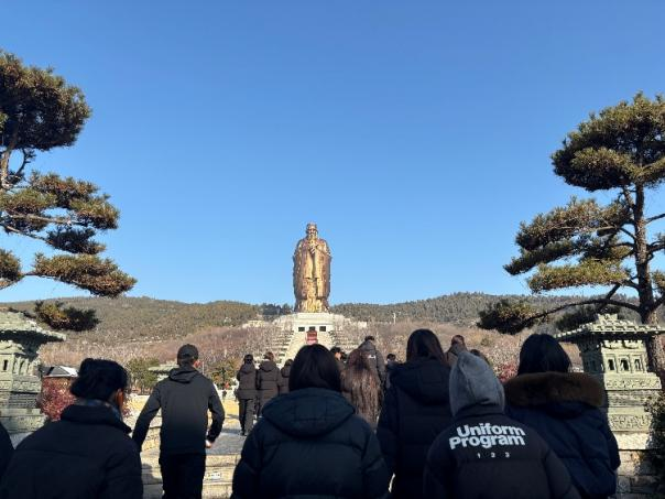 尼山圣境作为儒家文化的精神地标,为研学活动画上了浓墨重彩的一笔。在72米高的孔子像前,师生们参与“击鼓明志”仪式,许下“勤学修德、笃行致远”的青春誓言。