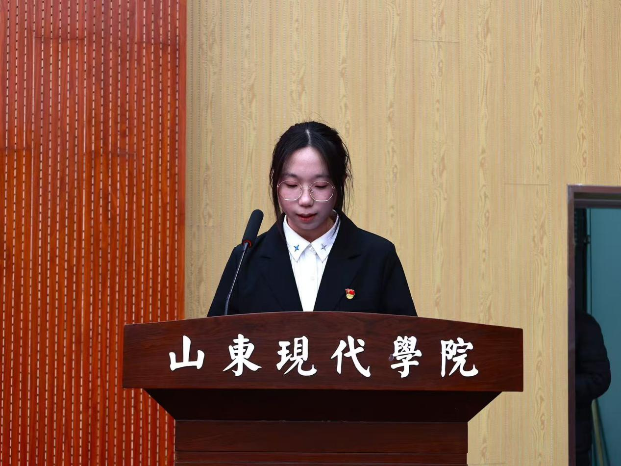 十佳党员宿舍学生代表徐洁同学发言。她表示,获评荣誉离不开学校老师的指导与同学的支持,并向全体同学提出以下倡议:宿舍成员们之间要多体谅互助,党员要多担当表率,共同用行动诠释使命,争做新时代好青年。