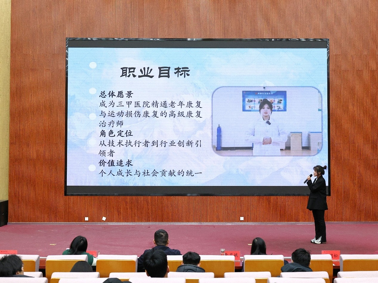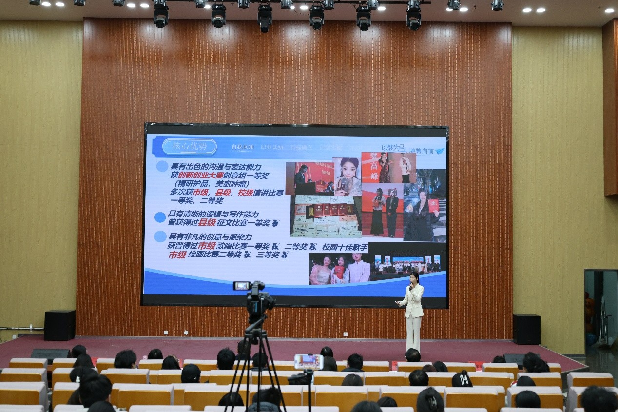 比赛现场,参赛选手按序登台进行职业规划展示,他们紧扣职业发展方向这一核心,从职业分析、目标设定、实施路径到风险应对等维度层层展开阐述,不仅精准结合了当下行业发展趋势,更充分挖掘自身专业优势与个人特质,将职业规划与专业匹配度、职业适配性深度融合。