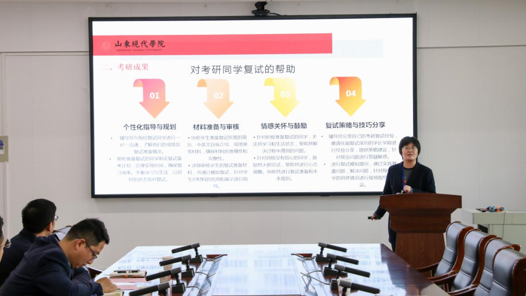 药学院常务副院长刘玉芹重点阐述了“以赛促学”与考研支持体系的成效。学院通过举办实践技能大赛,强化了学生的实践能力与团队精神;构建“全员、全程、全心、全力”的“四全”考研支持体系,助力2025届41名学生成功升学。下一步将聚焦教学方法创新、学习兴趣激发与数字化手段应用,推动学风建设向纵深发展。