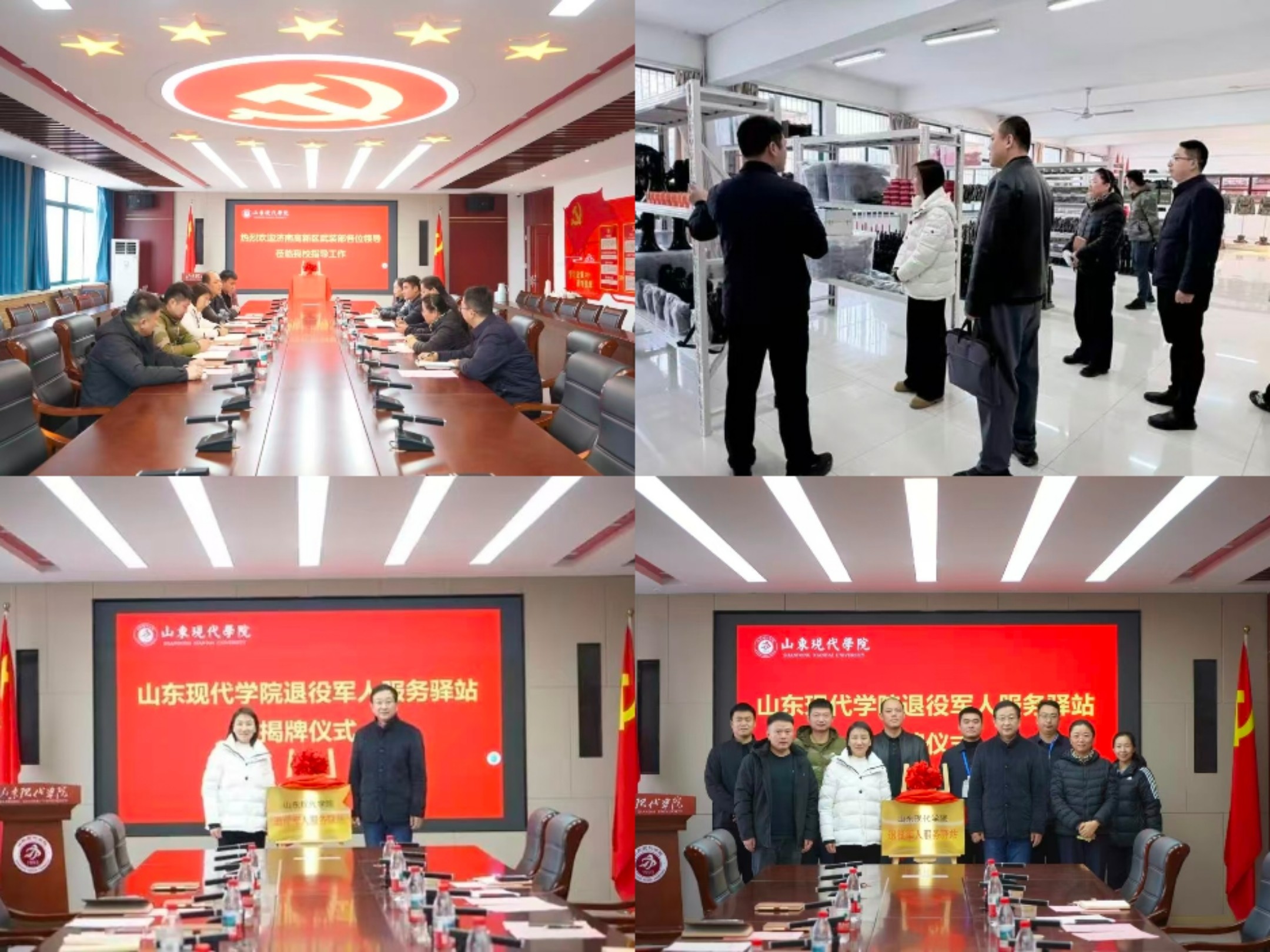 为深化校地协同合作,推动我校大学生参军入伍及退役军人事务工作高质量发展,2025年12月30日,济南高新区社会事务部人民武装和退役军人事务办公室主任宫娜一行莅临我校开展专项调研,并为我校退役军人服务驿站揭牌,学校常务副校长姜同松、学生处处长兼征兵工作站站长刘锦绣等校领导及相关部门负责人陪同调研。 调研组首先实地参观了我校国防教育器材室,详细了解国防教育设施建设、器材配备及使用管理情况,对我校国防教育基础保障工作的规范化建设给予肯定。 随后,双方举行专项工作座谈会。高新区社会事务部人民武装和退役军人事务办公室李冰、季永鹏等同志介绍了辖区征兵与退役军人事务整体推进情况及下一步工作部署。我校相关负责人从征兵宣传、流程规范、服务保障等方面汇报了主要做法与成效,并就当前工作难点进行了交流。双方围绕大学生征兵动员、退役大学生精准服务、校地资源联动等议题展开深入研讨,明确了后续合作方向与具体路径。座谈会后,我校举行退役军人服务驿站揭牌仪式。济南高新区社会事务部人民武装和退役军人事务办公室主任宫娜与我校常务副校长姜同松共同为驿站揭牌,标志着我校退役军人服务工作迈入精准化、常态化的新阶段,也为校园国防教育的深入开展提供了有力支撑。 此次调研为我校深化校地合作搭建了良好平台,进一步明确了工作方向。学校将以驿站成立为契机,持续完善征兵工作机制,提升退役军人服务水平,不断丰富国防教育内涵,切实发挥高校在服务国防建设与社会发展中的积极作用。