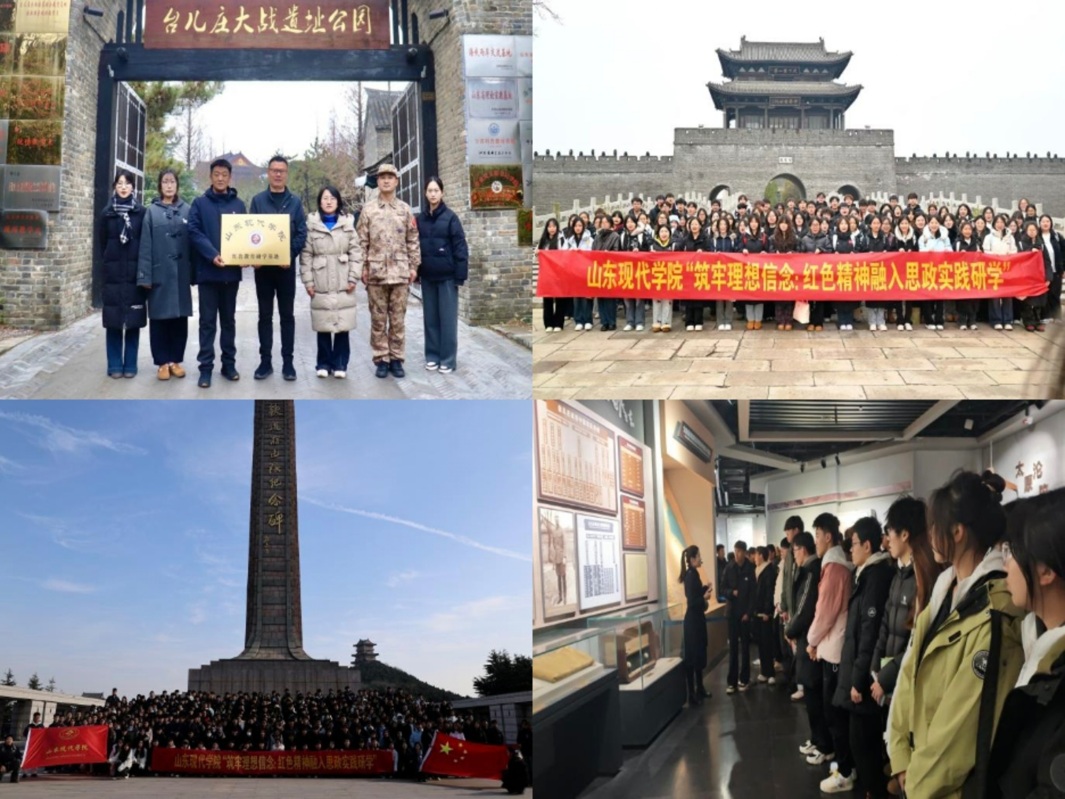 为深化“大思政课”改革创新,推动红色基因与育人实践深度融合,近日,山东现代学院组织师生代表赴枣庄台儿庄开展红色研学活动,并举行“山东现代学院台儿庄红色研学基地”挂牌仪式。这标志着校地双方以红色文化为纽带,正式搭建起爱国主义教育与文旅融合发展的共建平台,让师生在行走中感悟历史,在实践中传承精神。 台儿庄作为“中华民族扬威不屈之地”,拥有台儿庄大战纪念馆、大战遗址公园等丰富红色资源,是全国首批“大思政课”实践教学基地。在全体参与人员的共同见证下,校地双方代表共同为“山东现代学院红色研学基地”挂牌。双方将以基地为依托,深化红色研学、实践教学、文化传播等多维度合作,实现资源共享、优势互补。研学期间,师生们循着历史足迹,先后参观台儿庄大战纪念馆、月河街巷战遗址等红色地标。在弹孔密布的遗址墙前,大家聆听英雄故事,触摸战争记忆;在全景画馆中,沉浸式感受“无墙不饮弹,无土不沃血”的悲壮历史,深刻体悟中华民族“天下兴亡、匹夫有责”的爱国情怀。校地双方将以基地为桥梁,让红色基因代代相传,共同书写爱国主义教育与地方发展相得益彰的新篇章。
