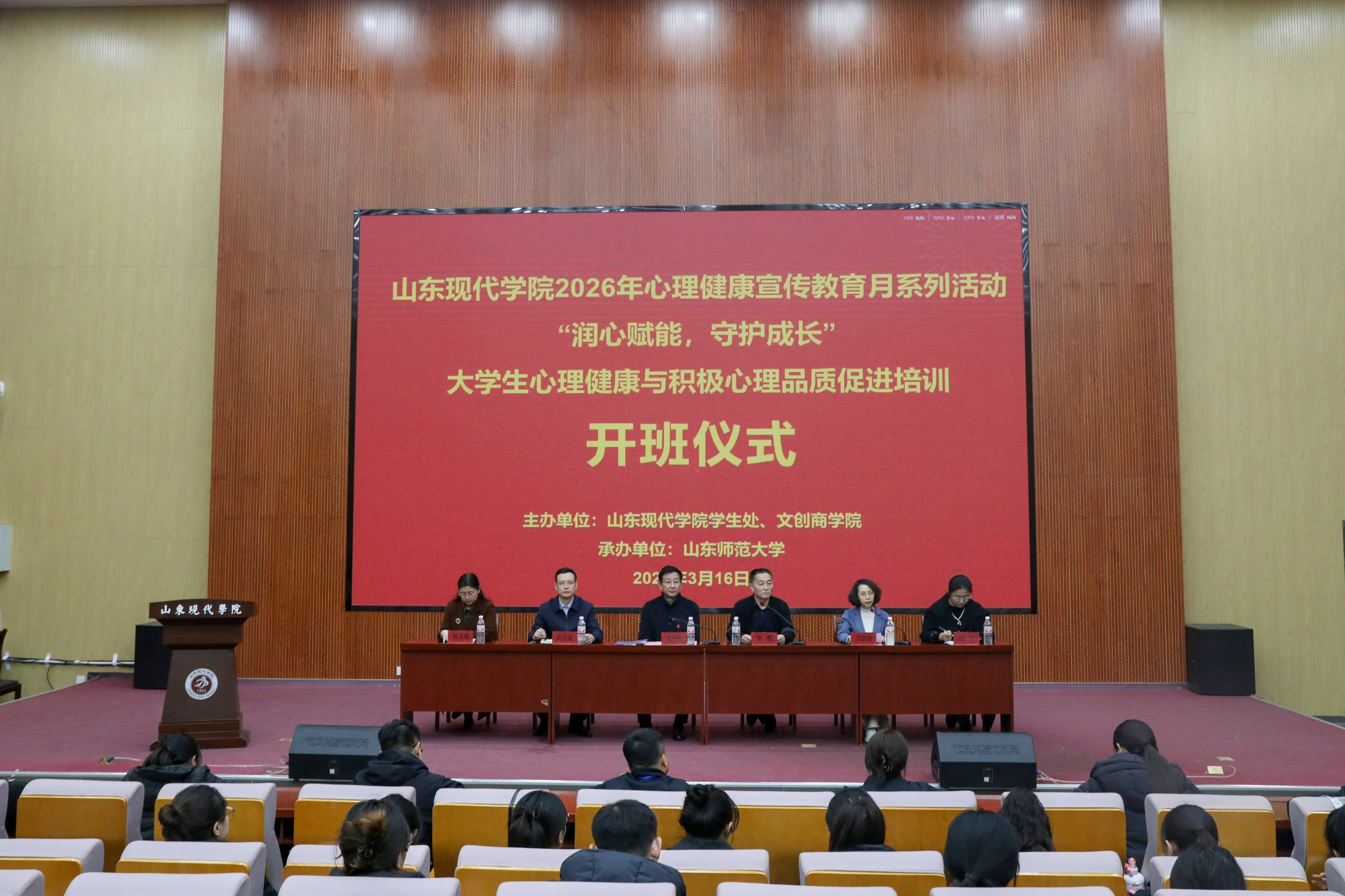 为进一步提升师生的心理健康素养,3月16日,山东现代学院文创商学院联合大学生心理健康中心、学生处辅导员发展中心举行“润心赋能,守护成长”大学生心理健康与积极心理品质促进培训开班仪式。特别邀请山东师范大学专家团队参与指导。
