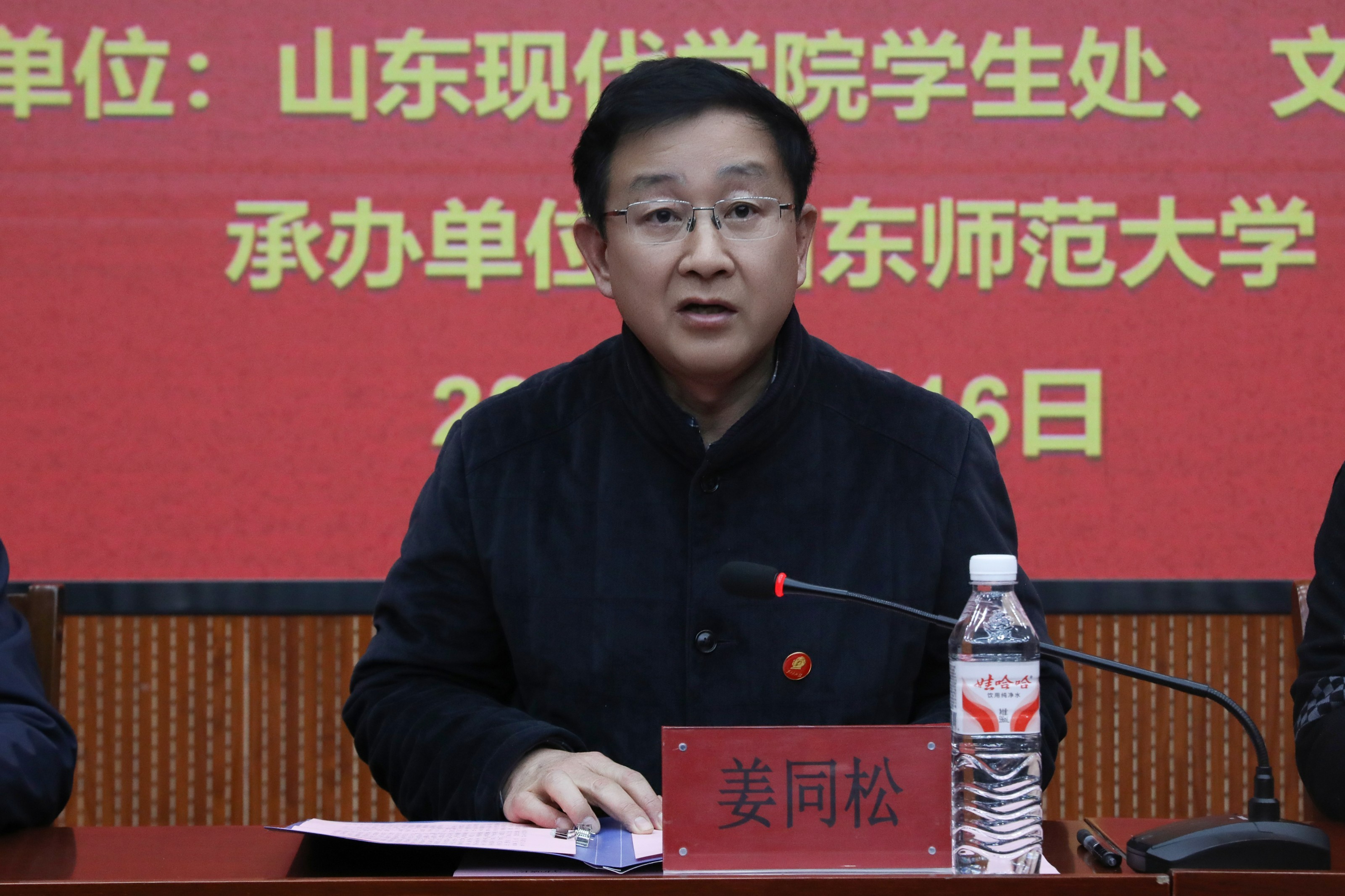学校常务副校长姜同松教授、山东师范大学常淑敏教授等领导嘉宾出席仪式,全体辅导员及各二级学院学生代表参加仪式。