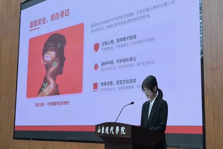 3月18日,学校在图书馆报告厅举办国家安全主题演讲大赛。现代学子围绕总体国家安全观,以青春之声诠释责任与担当,用真挚语言传递家国情怀。