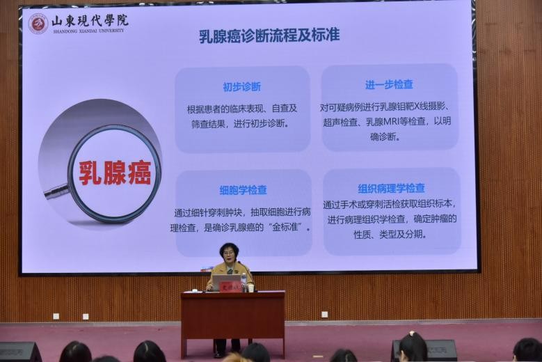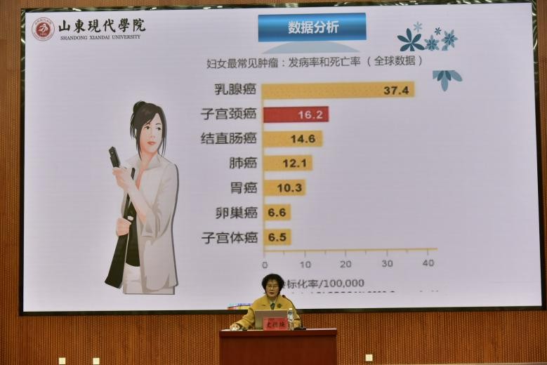 讲座伊始,史德焕教授从全球女性肿瘤发病率数据入手,直观呈现了乳腺癌、宫颈癌在女性恶性肿瘤中的高发性,让同学们深刻认识到两癌防治的重要性,特别强调了宫颈癌是目前唯一病因明确、可早期预防、可消除的癌症。